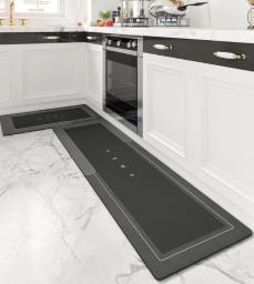 Outlay Home Kitchen Mats, Waterproof Memory Foam Kitchen Rugs, Standing Desk Mat Floor Mats, Comfort Runner Rug Carpets for Kitchen Floor, Sink - 2 Piece (Brown)