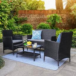 OUTLIVING Outdoor 4 Seater Sofa Set | Patio Furniture Balcony Sofa | Indoor Sofa | Wicker Rattan Garden Sofa Set With Cushion And Center Table - (Black), 31 Inches, 41 Inch