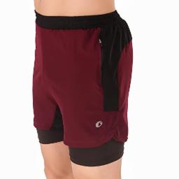 Oysters Men’s 2 in 1 Running Shorts Quick Dry Gym Athletic Workout Shorts for Men with Phone Pockets (L, Wine)