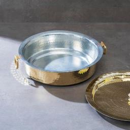 P-TAL Brass Lagan 6.5L, Tin Coated with Lid 100% Pure Brass Degchi for Cooking 6.5kg Biryani Handi Ptal Brass Utensils for Kitchen (Free 30ml Copper & Brass Cleaning Solution)
