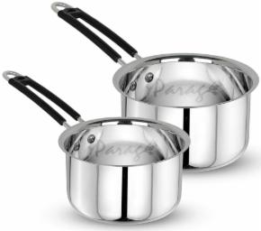 Parage 2 Pieces Stainless Steel Sauce Pan, Tea Pan, Milk Pan Heavy Guage with Heat-Resistant Wire Handle Induction & Gas Stove Friendly (1 LTR & 1.25 LTR, Silver), 2.25 Liters
