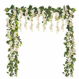 Party Propz Ivory Wisteria Artificial Flowers for Decoration - 12Pc(3.6ft), Money Plant Artificial Leaves- 2Pcs(8ft), Haldi Decoration Items, Wedding Decoration Items, Flowers for Decorations Backdrop