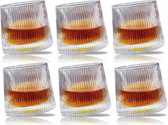 Patrani Fashion | New Dancing Whiskey Glass 200 ML, Set of 6 with Rotable Bottom, Spining Glasses Bar Glass for Drinking Bourbon, Whisky, Scotch, Cocktails, Cognac- Old Fashioned Tumblers