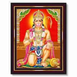 Pavan Photo Laminations Lord Hanuman Ji Hanumanji Jai Bajrangbali Wall Painting Framed Home Decor (Wood,Matte,Brown,Small Size,6 x 8 Inch) B756S