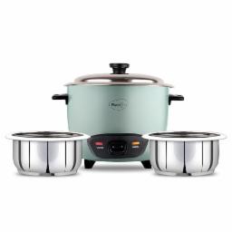 Pigeon Inox Rice Cooker with Double pot, 1.8 litres | Stainless Steel Lid | 700 Watts | 2 Steel Cooking Pot | Measuring Cup | Spatula | Energy Efficient Cooking