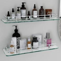 Plantex Premium Transparent Glass Shelf for Bathroom/Kitchen/Living Room - Bathroom Accessories (Polished, 18x6 Inches) - Pack of 2