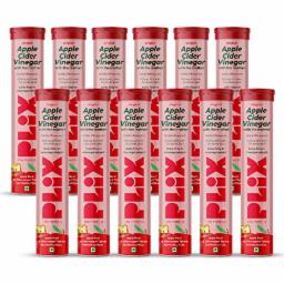 PLIX - THE PLANT FIX Apple Cider Vinegar 15 Effervescent Tablets with mother for weight loss and vitamin B6 & B12, Pack of 12 (Apple), 100% vegan, No added Sugar, Easy to carry & consume
