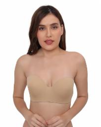 PLUMBURY Microfiber Lightly Padded Strapless Multiway Underwire Everyday Bra for Women, Size 34-40 Beige