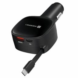 Portronics Car Power Retracto 84W 3 in 1 Car Charger, 80 cm Retractable Cable (33W Type-C PD), Dual Port (18W USB Type-A & 33W Type-C) for Laptop, Android, iPhone, Earbuds and More (Black)