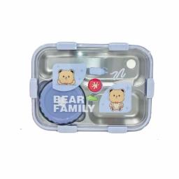 Prejak Stainless Steel Container Teddy Bear Theam Lunch Box for Adults Kids, Durable BPA-Free Dishwasher Safe Lunch Containers for Boys, Girls, School & Office Men.Pack of 1. (Blue)