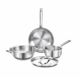 Prestige Tri-Ply Stainless Steel BYK Cookware Set| Fry Pan 24cm (1.7L), Kadai 24cm (2.7L) with SS Lid, Sauce Pan 16cm (1.5L)| Even Heat Distribution| Gas &Induction Compatible|Silver