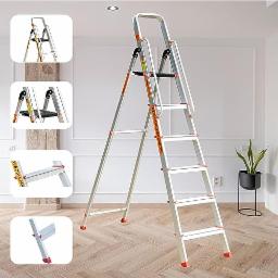 Prime Safe-T 6Step (5+1) Foldable Aluminium Ladder for Home and Office Use with Hand-Rails | Anti-Skid PVC Shoes | Garment Guards | Heavyduty Antiskid Platform
