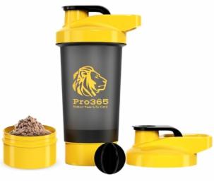 PRO365 Modern Leakproof Protein Shaker Bottle | Protien Powder Compartment | PRO Leakproof Lid | Gym Bag Compatible | 600 ML |