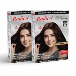 Radico Natural Herbal Permanent Shade Dark Brown Hair Colour - No Ammonia Formula - Long-Lasting Natural Looking Color - 100% Grey Coverage, Easy to Use, Mix & Apply (Pack of 2)
