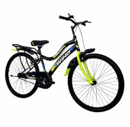 RALLEY GOLD Wind 26T Premium City Bike with in-Built Carrier | Non Gear Cycle for Adults (Single Speed) (Black/Green)