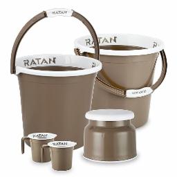 RATAN PLASTICWARE Plastic Bathroom Set of 5 Pieces Combo Pack Gloria Plain 18 Liters 2 Pieces Bucket + Nova Stool Patla 107 + Two Gloria Plain Bath Mug 1 Liter Color Light Brown
