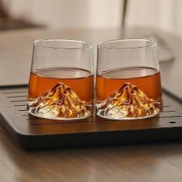 Red-Rubby Mountain Whiskey Glass – 230ml | Pack of 2 | Premium Glass with 3D Mountain Base – Unique Bourbon, Scotch, or Cocktail Tumbler – Great Gift for Men and Whiskey Lovers (Random Colour)
