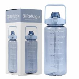 REFULGIX 2L Motivational Sipper Water Bottle with Straw & Time Marker | BPA-Free Leakproof Sports Bottle for Gym, Fitness, Office, School, Home & Outdoor Hydration (Baby Blue) Plastic