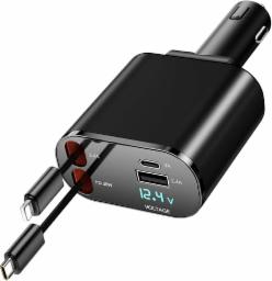 Retractable Car Charger, 4 in 1 Fast Charging Car Charger 100W, Retractable Cable and 2 USB Ports Car Charger Adapter Compatible with iPhone 15 14 13 12 11 Pro Max, Galaxy S23, Pixel Car Charger