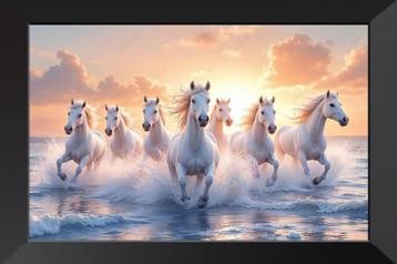 RISOBEX 7 Horse Vastu Canvas Painting with Frame For Energize Your Space with Prosperity and Harmony |seven running horses painting/7 horses painting lucky Running/Horses Sunrise Art Print for wall