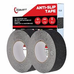 Robustt Anti Skid/AntiSlip 18mtr(guaranteed) X50mm (Pack of 2) Black Fall Resistant with PET Material and Solvent Acrylic Adhesive Tape for Slippery Floors, Staircase, Ramps, Indoor, Outdoor Use