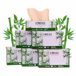 Ronsher 2 Ply Bamboo Facial Tissue Paper Box | 100 Pulls | Pack Of 6 | OBA-Free | Virgin Paper | Food Safe | Skin-Friendly | Suitable For Bedroom, Bathroom, Office, Cars