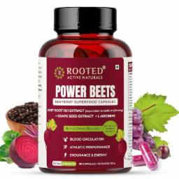 Rooted Active's PowerBeets - Beet Root Capsules, Helps Support Nitric Oxide Production, Blood Pressure, Heart Health, Contains Non-GMO Beetroot Powder, Grape Seed Extract (90 Caps)