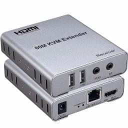 RUHZA 60M USB KVM HDMI Extender, with 1080P R/L Audio by CAT5E Cat6 RJ45 Ethernet Cable Transmitter Receiver Audio Video Converter PC Laptop to TV Monitor(PACK OF1)
