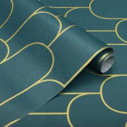 Rylan Stripe Peel and Stick Wallpaper Modern Black Contact Paper Geometric Black and Gold Removable Paper Self Adhesive Wallpaper Decorative for Wall Countertop Bedroom Vinyl Film (Green 45 * 300)