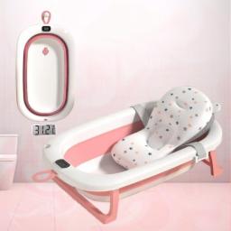 Safe-O-Kid Baby Bath Tub with Digital Meter, 1 Year Warranty, with Support Cushion Drain Plug,Portable/Foldable Travel Friendly Anti-Skid Collapsible Bathtub, Easy to Store for Newborn Bathing - Pink