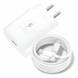 Samsung 25W Type-C Travel Adapter & USB C Cable Combo Mobile Charger Super Fast Charging Adaptor with PD Charging for Samsung Galaxy S24 Ultra S23 S22 S21 fe S20 S20+ M14 5G M34 M54 M53 5g M33 - White