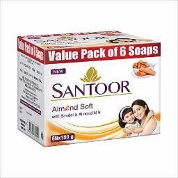 Santoor Sandalwood and Almond milk Organic Soft Bath Soap for Softer, Smoother and Moisturised Skin, Combo Offer 150 g pack of 6