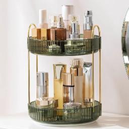Satpurush 360° Rotating Makeup Organizer Box - Cosmetic Storage with Drawers, Plastic Makeup Holder Stand for Dressing Table, Lipsticks, Nail Polishes & Accessories (2 Layer, Gem Green)