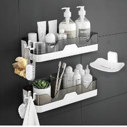 Satpurush Plastic Bathroom Accessories, Bathroom Rack, Bathroom Shelf Organizer, Wall Mounted Shelf, Bathroom Hardware & Accessories, Storage Racks (3 Pack, Bath Shelf with Soap Dish & 4 Hook) White
