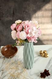 SATYAM KRAFT 1 Pcs Artificial Head Rose Peony Fake Flowers Sticks Bunch Decorative Items for Home, Living Room, Table Decoration for Anniversary (Without Vase Pot) (Light Pink,Fabric)