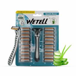 SBF WETELL 3 Blade Razor for Men with Aloe Lubricating Strip – 1 Handle + 20 Cartridges | Pivoting Head & Anti-Slip Grip for Smooth Shave