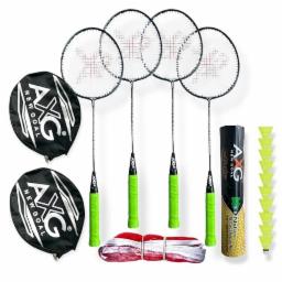 Scratch Resistant A-2000 Racquets - Set of 4 with 10 Plastic Shuttles and Net Badminton Kit (Green)