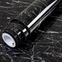 Self-Adhesive Kitchen Shelf Liner Roll - Oil-Proof, Waterproof Black Marble Wallpaper for Cabinets, Cupboards and Floors Black (60×200 cm, Pack of 1)