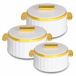 Selvel Camry Casserole Insulated Hot Pot with Stainless Steel Inner Single | Roti Casserole | Hot Box for Kitchen | Chapati, Roti, Biryani | Keeps Food Hot & Fresh (White, 3pc Set)