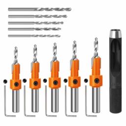 Serplex® 10Pcs Wood Countersink Drill Bit Set, 5Pcs Countersink Drill Bit with 5Pcs Extra Pilot Drill Bit, Tapered Drill Bits with 5/16" Round Shank, Counter Sinker Drill Bit Set for Woodworking