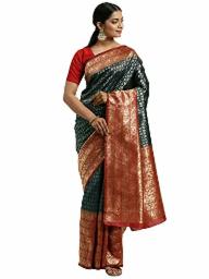 Shasmi Women's Designer Blue Silk Blend Banarasi Woven Design Saree for Women (KANKATALA RED BLUE)