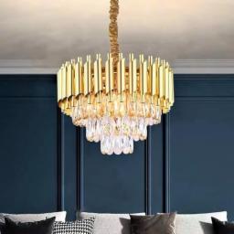 SINOMAN Modern Crystal Chandeliers Gold Crystal Chandeliers Round Crystal Chandelier Ceiling Light Fixture Crystal Pendant Light for Dining Room Living Room (Dia:12inch (Gold))