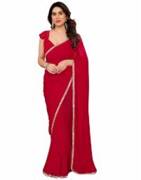 Get SIRIL Women's Georgette Mirror Work Lace Saree with Unstitched Blouse Piece (4255S667_Red) worth Rs.3299 @ Rs.779 only.