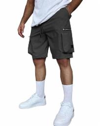 SMOWKLY Authentic Men's Cotton Classic Cargo Shorts || Elastic Waist & 4 Pockets || Regular Fit Above Knee Length Chino Half Pant for Summer (1660_Gry_32) Grey
