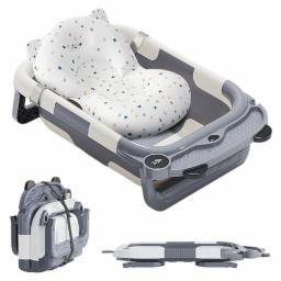 SNOWIE SOFT® Baby Bath Tub Foldable with Inflatable Shower Cushion Seat LCD Real Time Water Temperature Monitor Design Anti-Slip Baby Bathing Tub for 0 to 2 Years with Shower Head Holding Slot