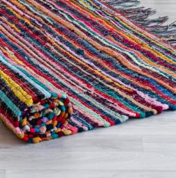 SOBAANRUG Floor Mat, Dari, Chindi Rug, for Bed Room, Living Room, Garden, Picnic, Yoga, Beautifully Design, Cotton Kitchen Mat Floor Carpet, 4.0X6.0 Feet, Multicolour, square