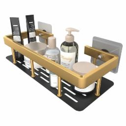 SRUNISH Bathroom Shelf for Wall, Gold Aluminum Bathroom Organiser, Wall Mounted Bathroom Shelves, Large Capacity Adhesive Bathroom Shelf (Pack of 1)