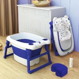 StarAndDaisy 2-in-1 Baby Bath tub for 0 to 5 Years with Bathing Chair & Cushion/Foldable Bath tub for Kids 0-3 Years for Girls and Boys, Space Saving Design & Fast Drainage (Blue)