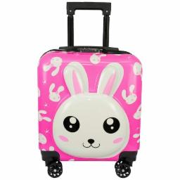 Storite 15 Inches Kids Trolley Bag Hard-Sided Polycarbonate Cute Rabbit Print Spinner Suitcase Trolley Bags for Kid's Travel (Pink - 35 x 23 x 38 Cm)