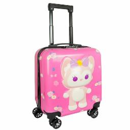 Storite 15 Inches Kids Trolley Bag Hard-Sided Polycarbonate Kitty Print Suitcase with Spinner Wheel Trolley Bag - Pink